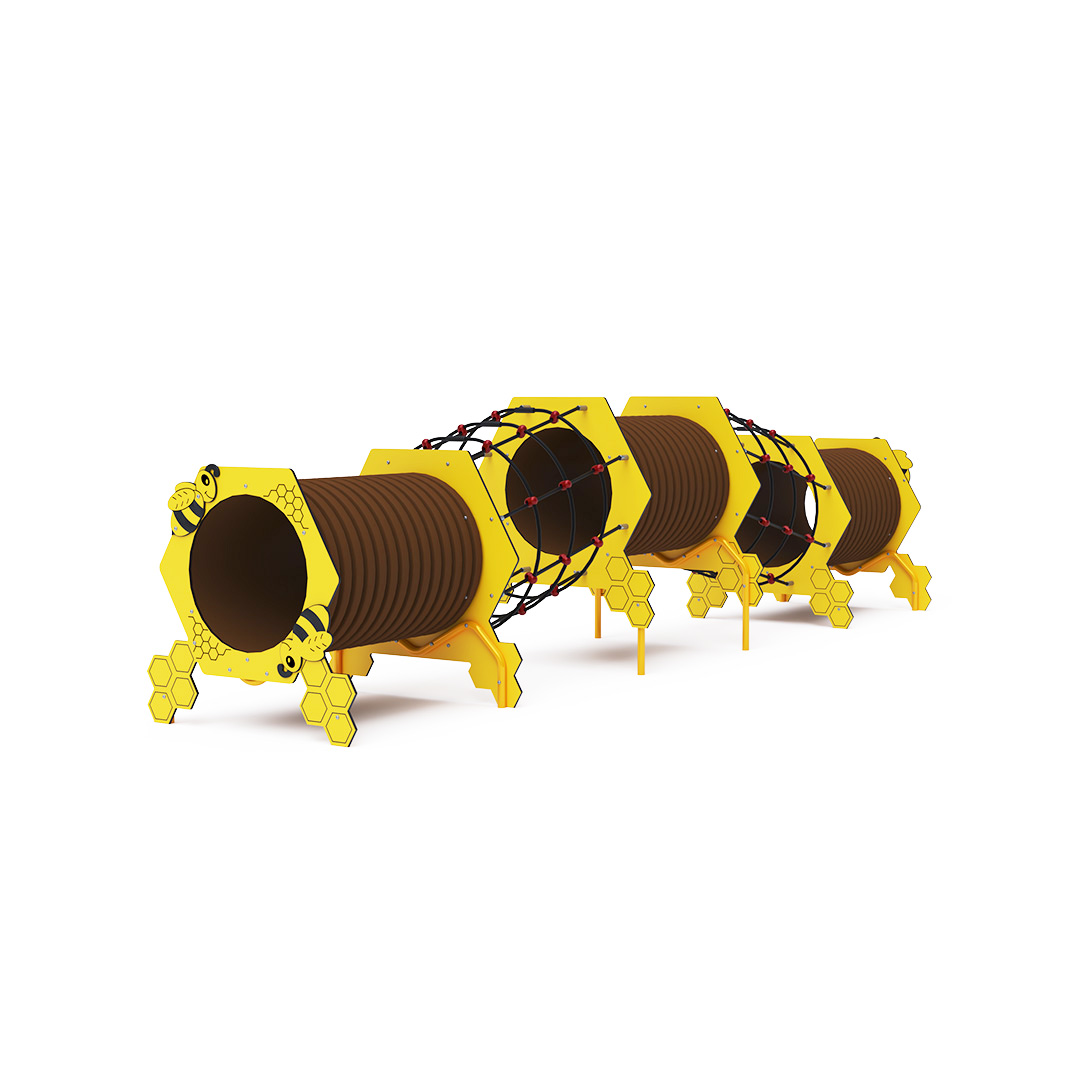 Das Spielelement im Design eines Bienenstocks mit Kunststofftunnel ist unsere große Version