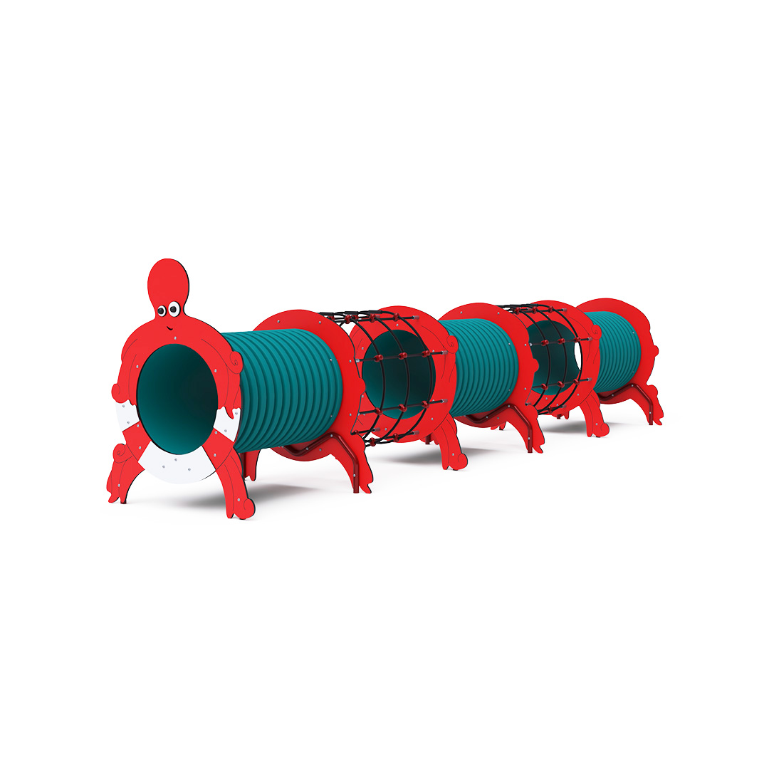 Das Spielelement im Design eines Oktopus mit Kunststofftunnel ist unsere große Version dieser Spielelementserie. Das Set besteht aus drei Tunneln, die durch zwei Seiltunnel verbunden sind. Das thematische Design regt die Fantasie der Kinder an. Die Vorder- und Rückseite sind aus HPL-Material gefertigt, das Langlebigkeit, Farbechtheit und Sicherheit garantiert. HPL ist umweltfreundlich, chemikalienbeständig, UV-beständig, ungiftig, recycelbar und bruchfest. Es besteht keine Verletzungsgefahr durch scharfe Kanten oder Splitter. Die Seile bestehen aus Polyesterfasern, die um den Kern gewickelt sind. Diese Konstruktion erhöht die Festigkeit und Widerstandsfähigkeit der Seile gegen mechanische Belastung. Polyester selbst besitzt viele positive Eigenschaften. Es ist resistent gegen Mikroorganismen und Witterungseinflüsse, trocknet schnell nach Regen, ist farbecht und zeichnet sich durch hohe Festigkeit aus. Die Verbindungselemente sind aus Edelstahl.