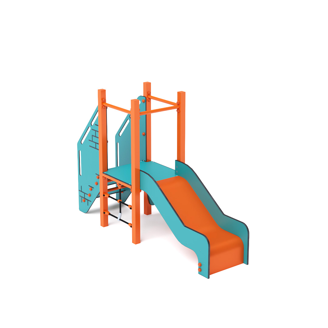 Mini-Turm-Kombinationsset: Ein niedriger Turm, an dem Kinder eine vertikale Seilwand, eine schräge Kletterwand oder eine Treppe hochklettern und eine Rutsche hinuntersausen können. Das türkis-orange Design lockt Kinder schon von Weitem zum Spielen an. Die Stahlkonstruktion ist dank Feuerverzinkung und robuster Pulverbeschichtung witterungsbeständig. Das verwendete HPL-Material ist chemikalienbeständig, UV-beständig, farbecht, ungiftig, recycelbar und bruchsicher. Es besteht keine Verletzungsgefahr durch scharfe Kanten oder Splitter. Alle Verbindungen sind aus Edelstahl und mit Kunststoffkappen versehen, um Haltbarkeit und Sicherheit zu erhöhen.