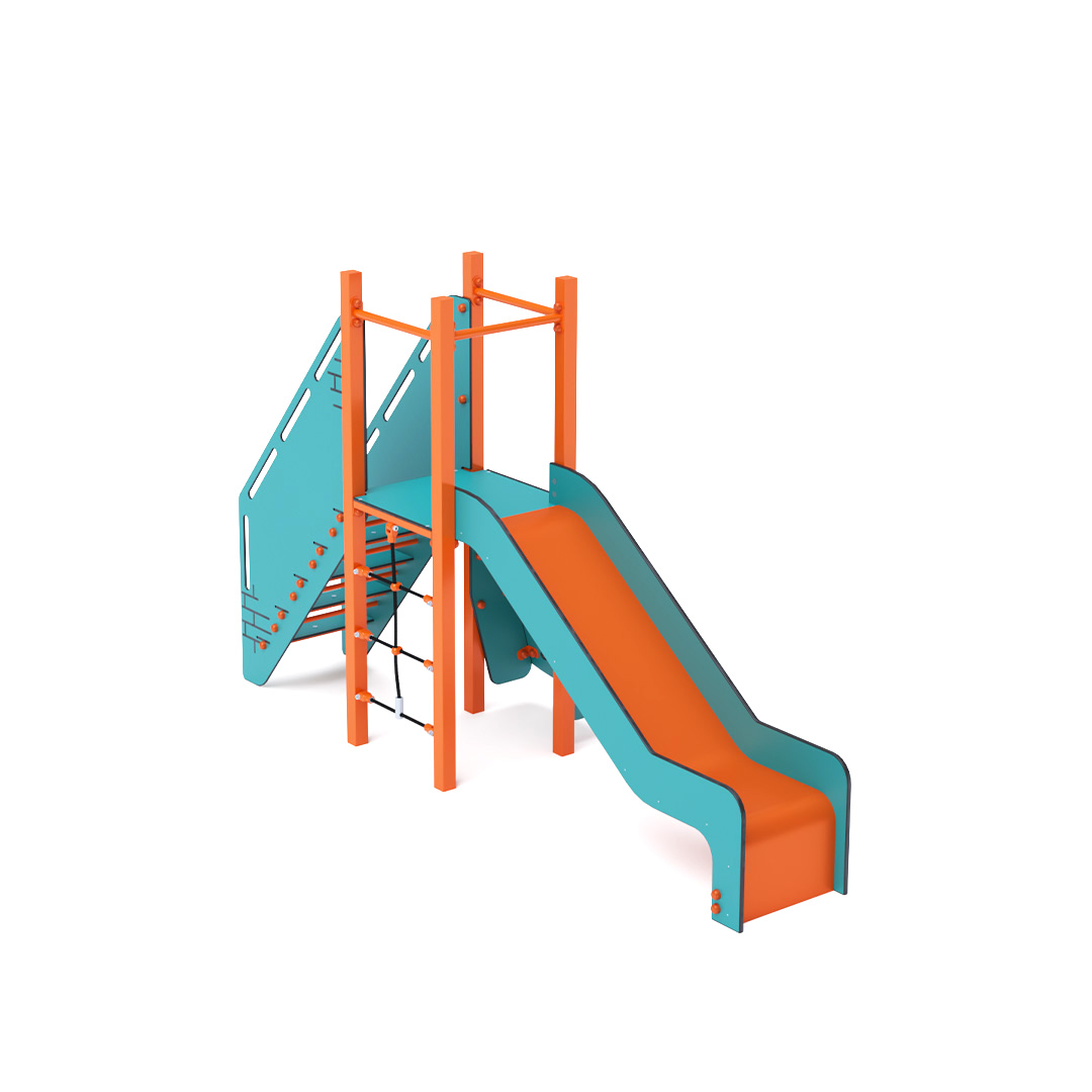 Mini-Turm-Kombinationsset: Ein niedriger Turm, an dem Kinder eine vertikale Seilwand, eine schräge Kletterwand oder eine Treppe hochklettern und eine Rutsche hinuntersausen können. Das türkis-orange Design lockt Kinder schon von Weitem zum Spielen an. Die Stahlkonstruktion ist dank Feuerverzinkung und strapazierfähiger Pulverbeschichtung witterungsbeständig. Das verwendete HPL-Material ist chemikalienbeständig, UV-beständig, farbecht, ungiftig, recycelbar und bruchsicher. Es besteht keine Verletzungsgefahr durch scharfe Kanten oder Splitter. Alle Verbindungen sind aus Edelstahl und mit Kunststoffkappen versehen, um Haltbarkeit und Sicherheit zu erhöhen.