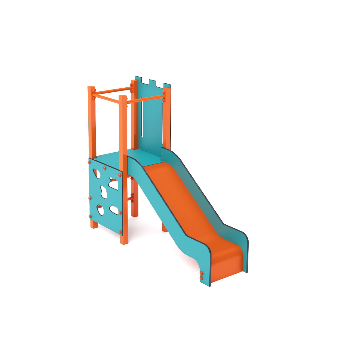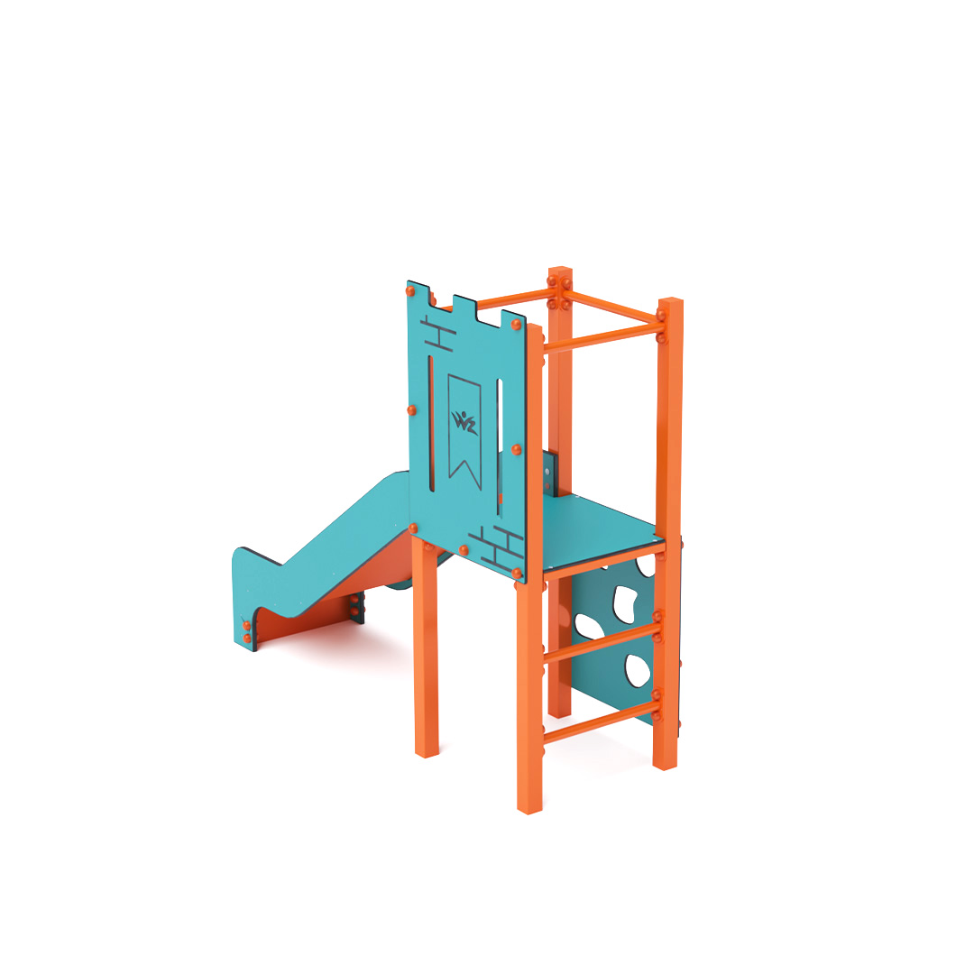Mini-Turm-Kombinationsset: Ein niedriger Turm, an dem Kinder eine vertikale Kletterwand oder eine geriffelte Kletterwand erklimmen und eine Rutsche hinuntersausen können. Das türkis-orange Design lockt Kinder schon von Weitem zum Spielen an. Die Stahlkonstruktion ist dank Feuerverzinkung und strapazierfähiger Pulverbeschichtung witterungsbeständig. Das verwendete HPL-Material ist chemikalienbeständig, UV-beständig, farbecht, ungiftig, recycelbar und bruchsicher. Es besteht keine Verletzungsgefahr durch scharfe Kanten oder Splitter. Alle Verbindungen sind aus Edelstahl und mit Kunststoffkappen versehen, um Haltbarkeit und Sicherheit zu erhöhen.